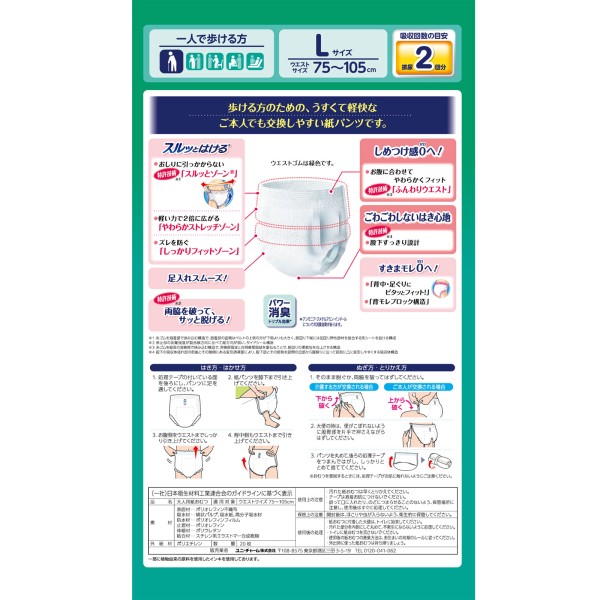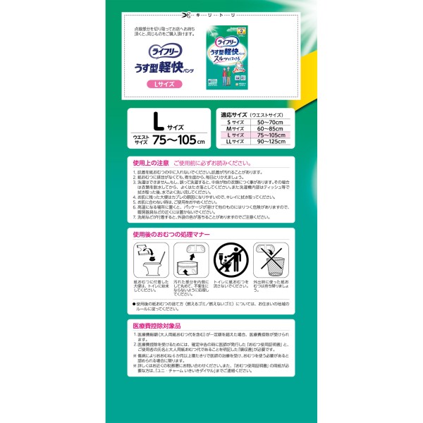 라이프리 얇은 경쾌 팬츠 L 20매 유니참 > 슬림형