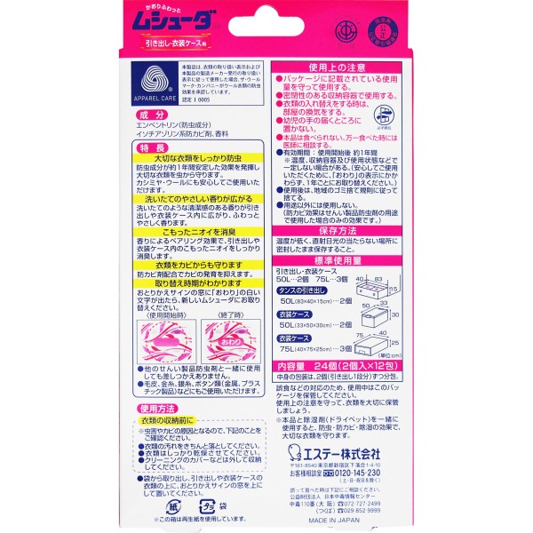 무슈다 1년간 유효 서랍·옷장 케이스용 부드러운 플로럴향 24개 에스테 > 향기 1년용