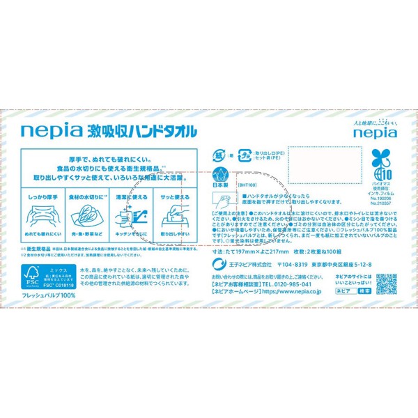 네피아 초흡수 핸드 타올 2겹 100매×5개 팩 오지 네피아 > 기타