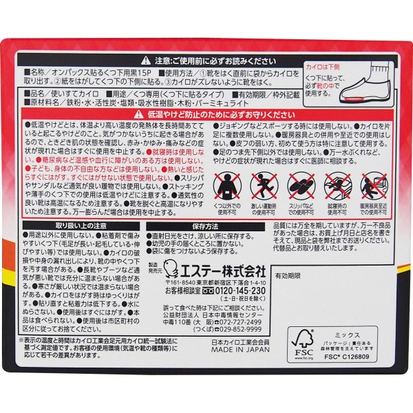 붙이는 온팩스 양말용 검정 15개 에스테 PB > 신발·양말용 카이로