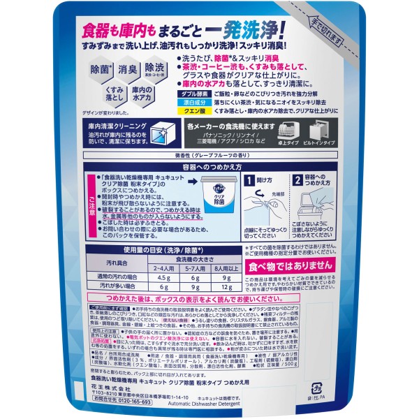 식기세척기 전용 큐큐트 클리어 제균 분말 타입 리필 500g 카오 > 식기세척기용