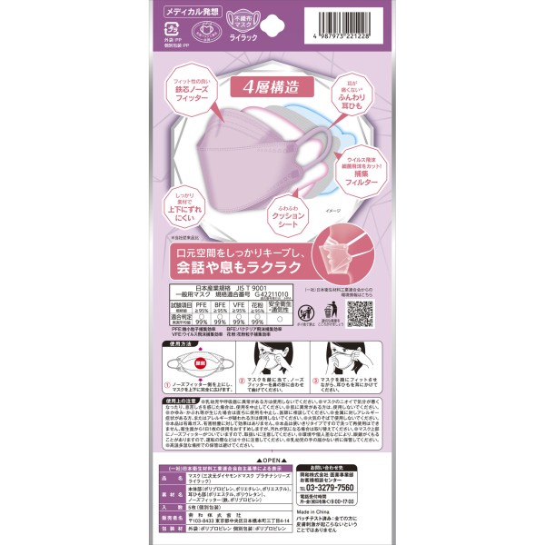 3차원 D 마스크 플래티넘 시리즈 라일락 5매 코와 > 입체 타입