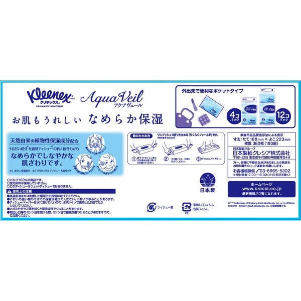 클리넥스 티슈 아쿠아 베일 5박스 팩 180조 일본 제지 크레시아 > 보습