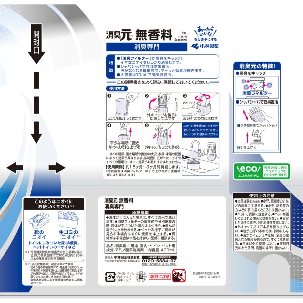 방 소취원 무향 400ml 고바야시제약 > 놓는 타입