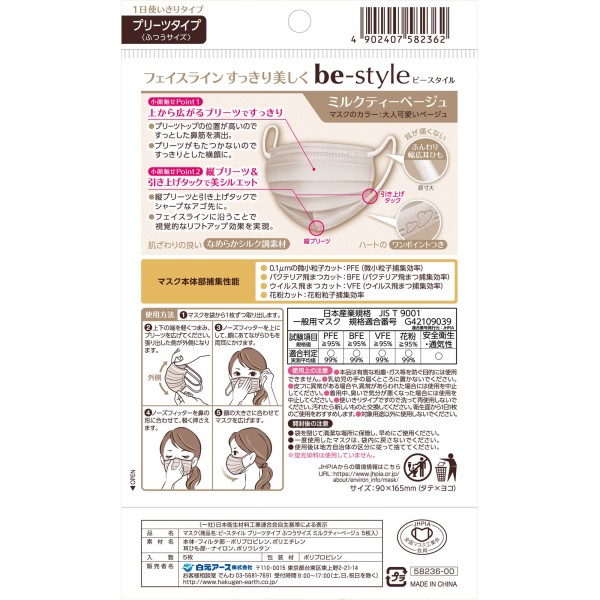 비 스타일 플리츠 타입 보통 밀크티 베이지 5매입 시라모토 아스
