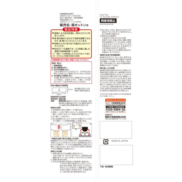 혈류 개선 어깨 핫통 4매입 고바야시제약 > 특수 카이로