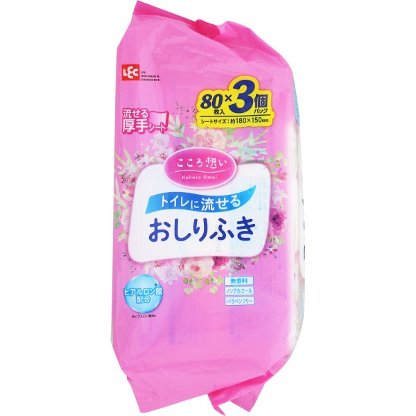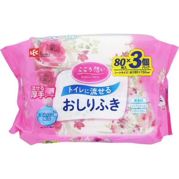 마음 담긴 흘려보낼 수 있는 엉덩이 물티슈 80매×3P 레크 > 물티슈 (변기에 흘려보낼 수 있는 타입)