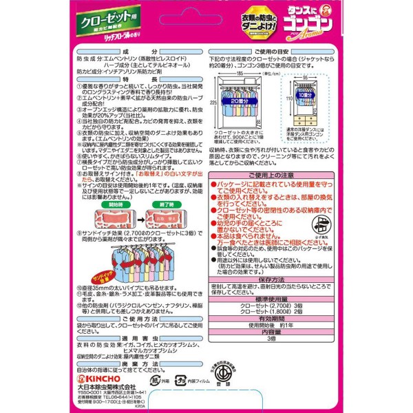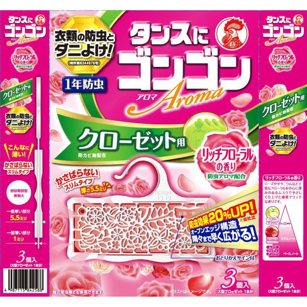 곤곤 아로마 의류 방충제 클로젯용 리치 플로럴향 (1년 방충·방곰팡이·진드기 퇴치) 3개 다이니폰 제충국 > 향기 1년용