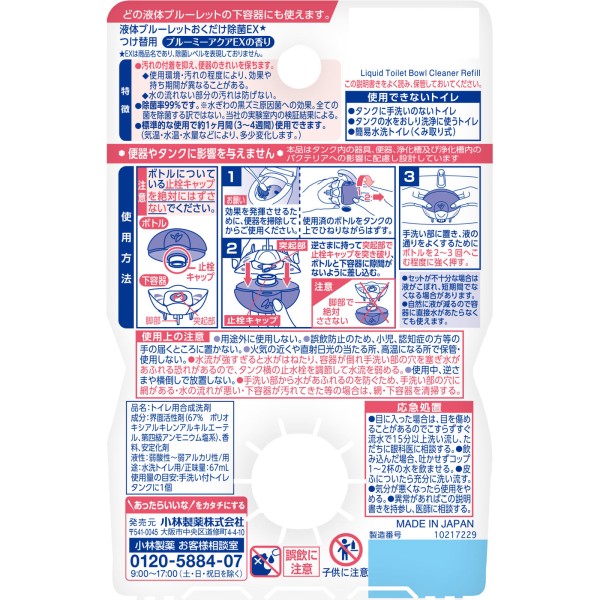 리퀴드 블루렛 두는 것만으로 제균 EX 교체 블루미 아쿠아 EX향 67ml 고바야시제약 > 변기 탱크용 액체