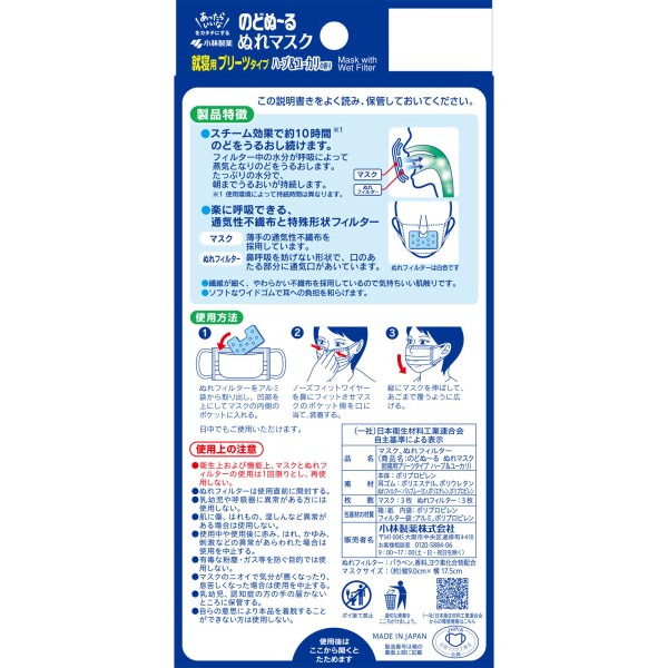 목 촉촉 마스크 취침용 허브&유칼립투스향 3조입 고바야시제약 > 가습 타입