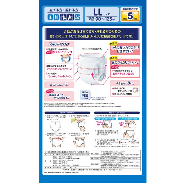 라이프리 재활 팬츠 LL 12매 유니참 > 장시간