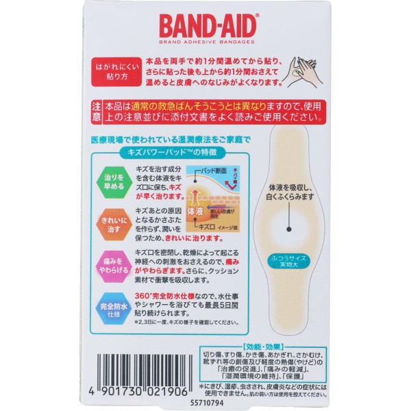밴드에이드 상처 파워 패드 보통 사이즈 10매 JNTL 컨슈머 헬스 > 구급 밴드(고기능 타입)