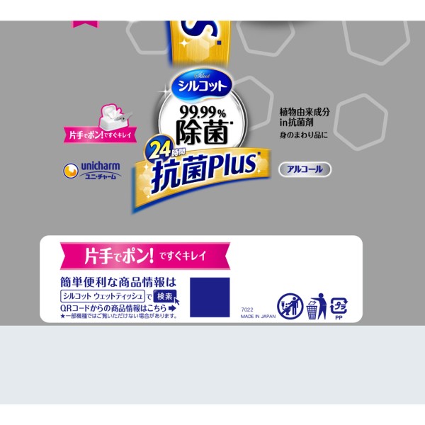 실코트 99.99% 제균 항균 플러스 웨트 티슈 알코올 타입 본체 34매 유니참 > 제균