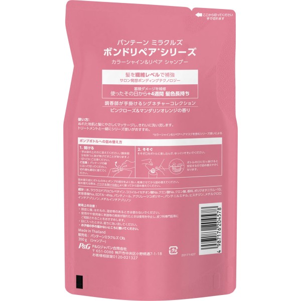판텐 미라클즈 본드 리페어 시리즈 컬러 샤인&리페어 샴푸 리필 350g P&G 재팬 > 팬틴 미라클즈