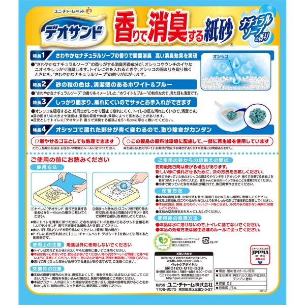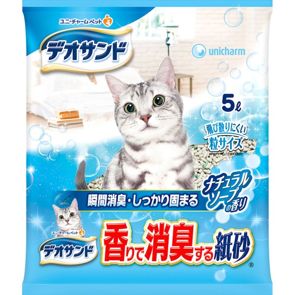 데오 샌드 향기로 소취하는 종이 모래 내추럴 소프향 5L 유니참 펫케어 > 종이·나무