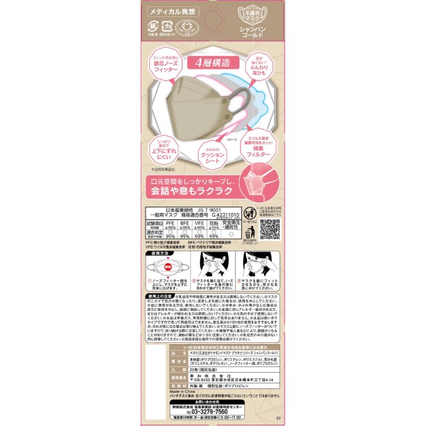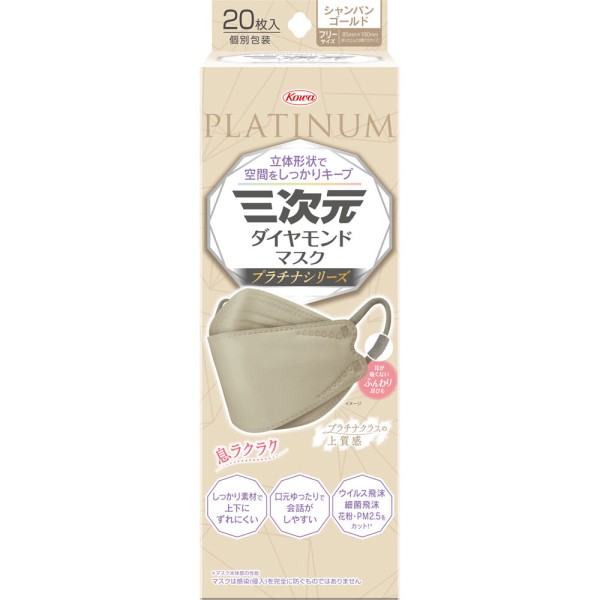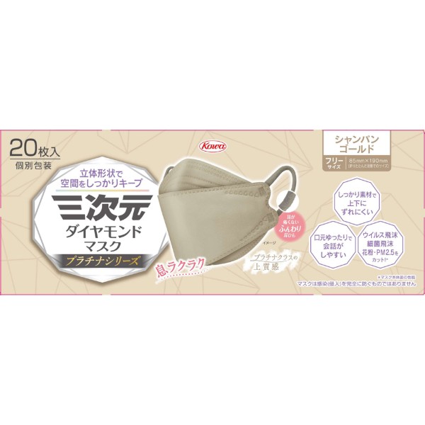 3차원 D 마스크 플래티넘 시리즈 S 골드 20매 코와 > 입체 타입