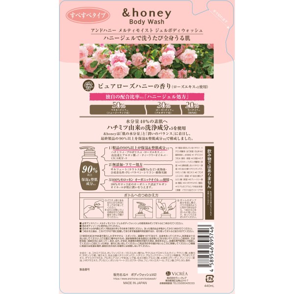 앤드 허니 멜티 모이스트 젤 바디워시 리필 440ml 주식회사 비클레아 > 프리미엄 (800엔 이상)