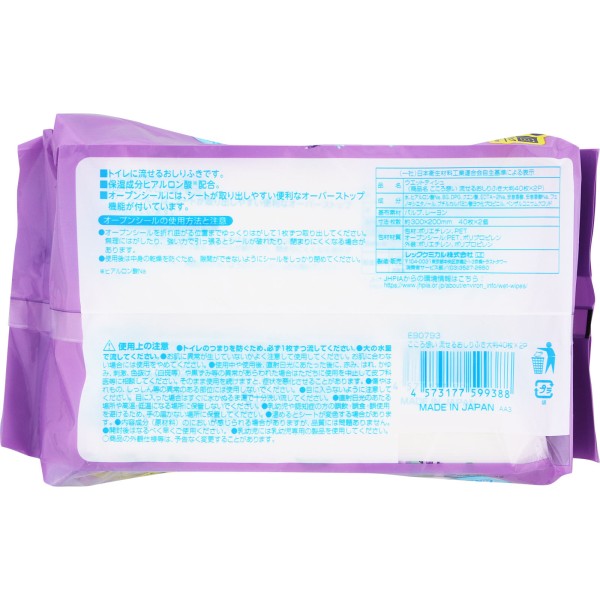 마음 담긴 흘려보낼 수 있는 엉덩이 물티슈 대판 40매×2P 레크 > 물티슈 (변기에 흘려보낼 수 있는 타입)