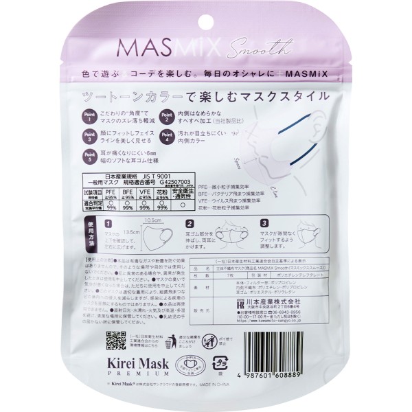MASMix 스무스 페일 라일락×다크 그레이 7매입 가와모토 산업 > 입체 타입