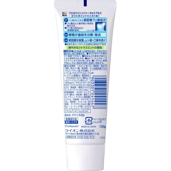 클리니카 어드밴티지 치약 시트러스 민트 세로형 130g 라이온 > 충치 예방
