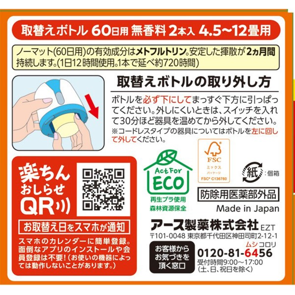어스 노 맷 교체 보틀 60일용 무향 액체 모기향 모기 침입 대책 살충제 2개입 아스제약 > 액체 모기 퇴치 세트·교체품