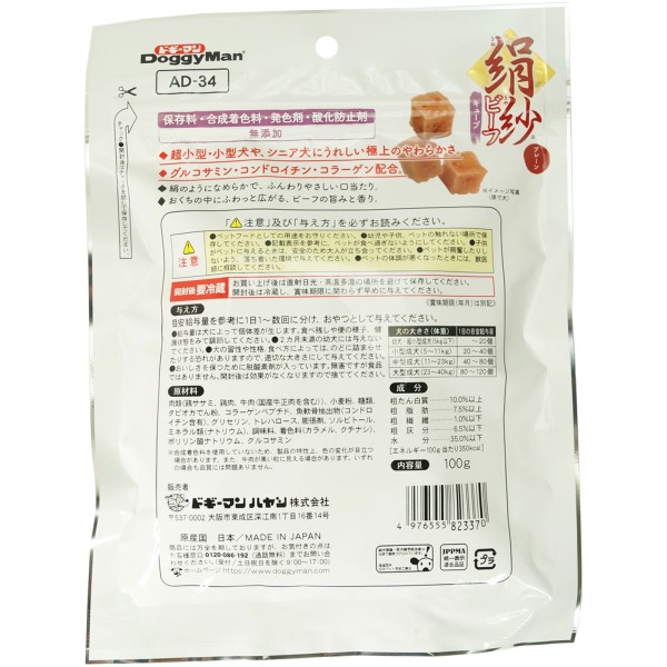 비단 결 비프 큐브 플레인 100g 도기맨 하야시 > 저키·축육 (유견·성견용)