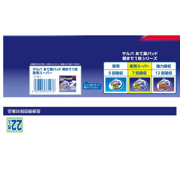 사르바 아침까지 1장 꼭 자는 패드 밤용 슈퍼 22매입 백십자