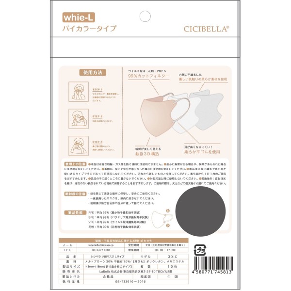 CCICIBELLA 마스크 3D 마스크 화이트 L 10매 La Bella > 입체 타입