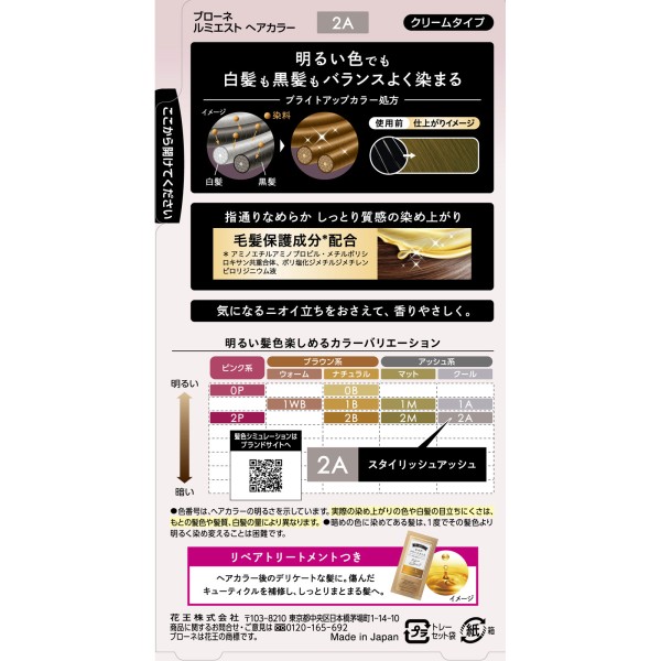 브로네 루미에스트 헤어 컬러 2A 스타일리쉬 애쉬 108g 카오 > 백발용 크림