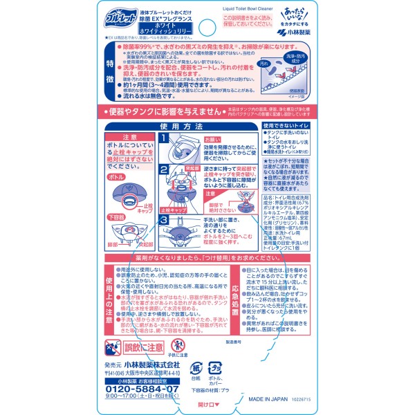 리퀴드 블루렛 두는 것만으로 제균 EX 프레그런스 화이트 화이티쉬 릴리 67ml 고바야시제약 > 변기 탱크용 액체