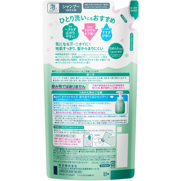 메리트 키즈 폼으로 나오는 샴푸 리필 270ml 카오 > 메리트