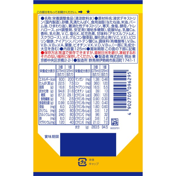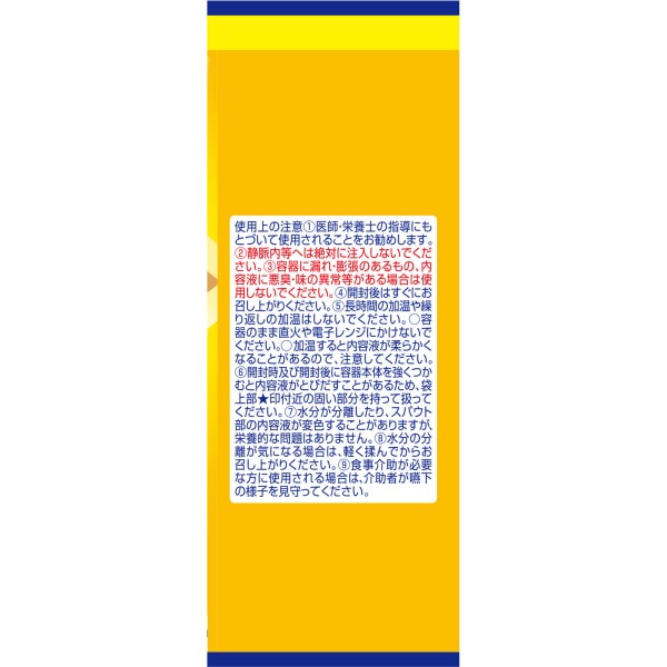 少量高エネルギー/ユニバーサルデザインフード/栄養素/おいしい/選べるおいしさ少量高エネルギー設計(200Kcal/125ml)、1個当たりたんぱく質7.5g、食物繊維2.5g/ユニバーサルデザインフード(UDF)区分の「かまなくてよい」食品形状/体に必要な6大栄養素(たんぱく質、脂質、糖質、食物繊維、10種のビタミン、7種のミネラル)を配合/まろやかでコクがあり、ほどよい甘さ/選べる8種類の味でおいしく栄養補給●食事が十分に摂れない時や、食事のバランスが崩れた時に、食事の代わり、または食事にプラスして飲むことで必要な栄養が補給できる、ゼリータイプの栄養食品。