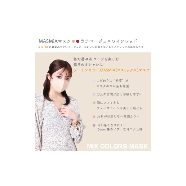 MASMIX 마스크 라테 베이지×와인 레드 7매입 가와모토 산업 > 입체 타입