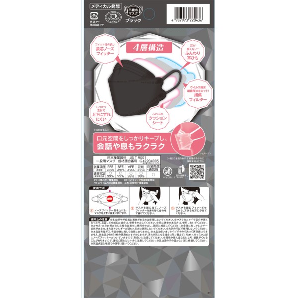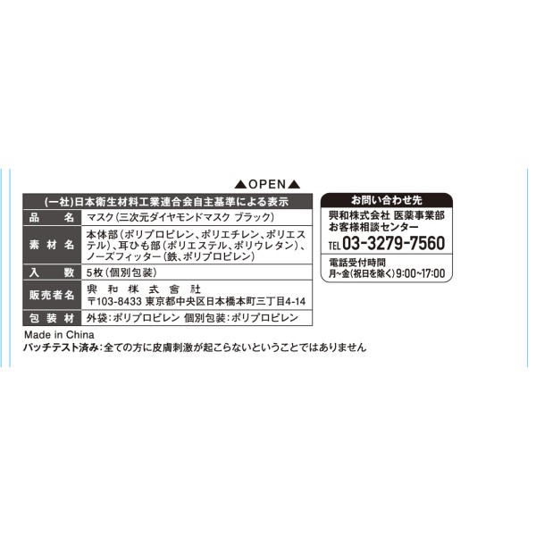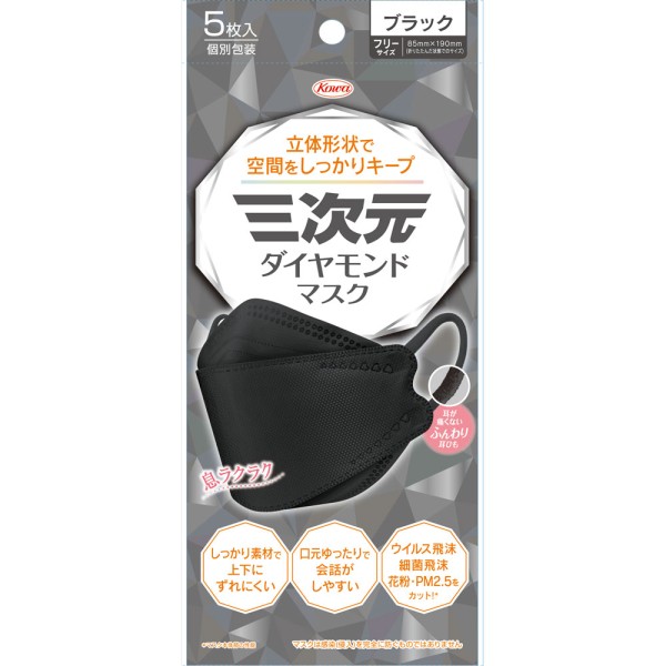 3차원 다이아몬드 마스크 F 사이즈 블랙 5매 코와 > 입체 타입