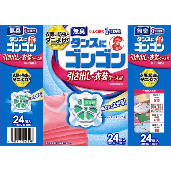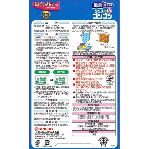 옷장에 곤곤 의류 방충제 서랍·옷장 케이스용 무취 (1년 방충·방곰팡이·진드기 퇴치) 24개 다이니폰 제충국 > 무향 1년용