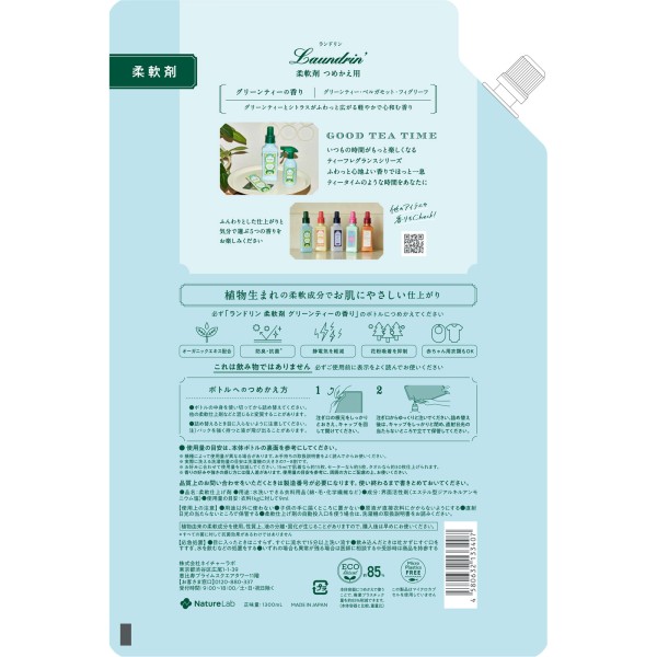 란도린 TEA 유연제 그린 티향 리필 대용량 1300ml 네이처랩 > 기타