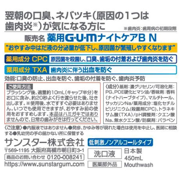 검 나이트 케어 린스 나이트 허브 450ml 썬스타 > 치주병 예방
