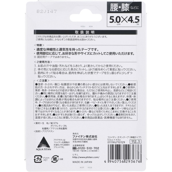파이텐 티타늄 테이프 신축 타입 허리·무릎 5cm×4.5m 파이텐 > 기타