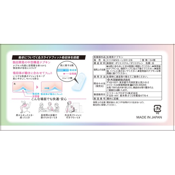 에리스 맨살의 느낌 루나 피트 초슬림 (가벼운 날용) 날개 없음 34매 다이오제지