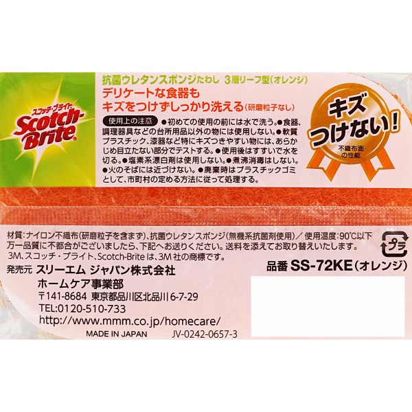 항균 우레탄 스폰지 수세미 리프형 3층 2개 스리엠 재팬 > 스펀지 (하드)