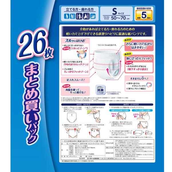 라이프리 재활 팬츠 S 26매 유니참 > 장시간