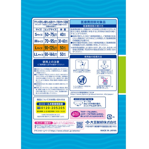 어텐트 소취 효과 포함 테이프식 L 15매 다이오제지 > 테이프 고정 타입