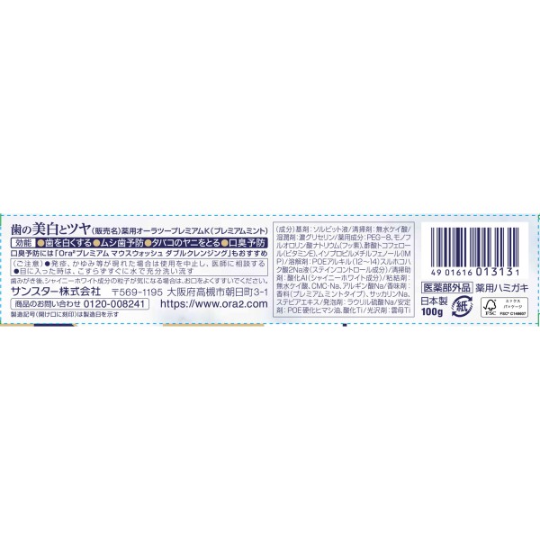 오라 투 프리미엄 스테인 클리어 페이스트 프리미엄 민트 100g 썬스타 > 미백