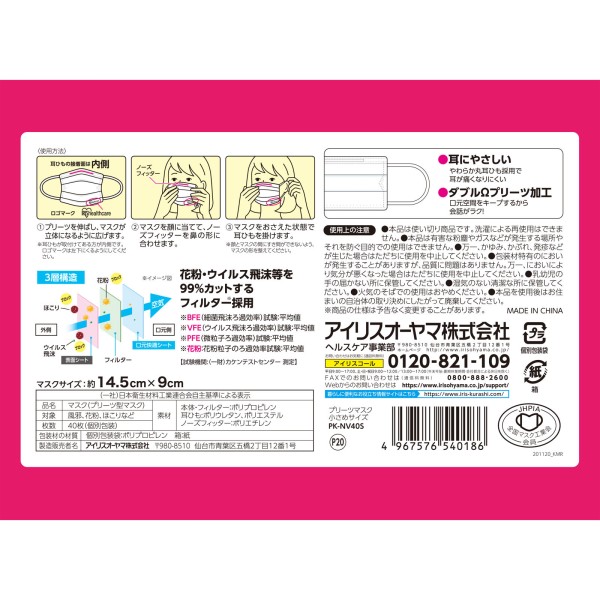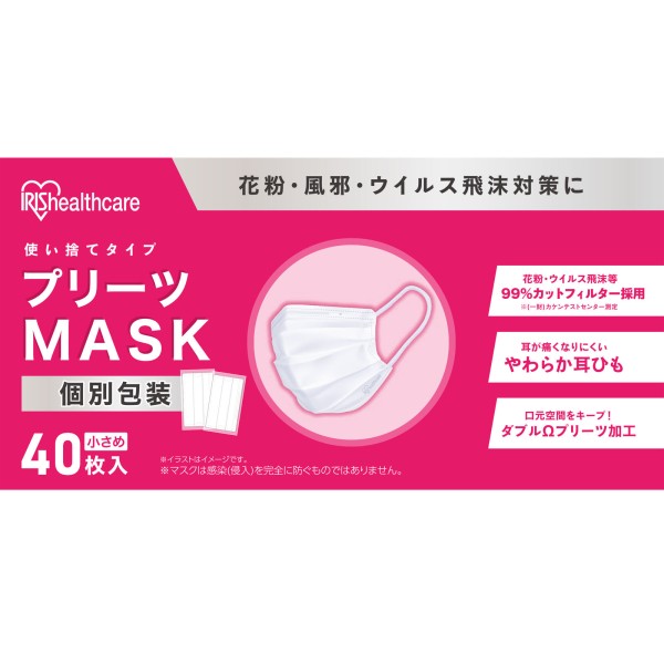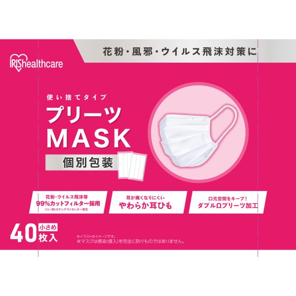 플리츠 마스크 개별 포장 소사이즈 40매 아이리스 오야마 > 대용량