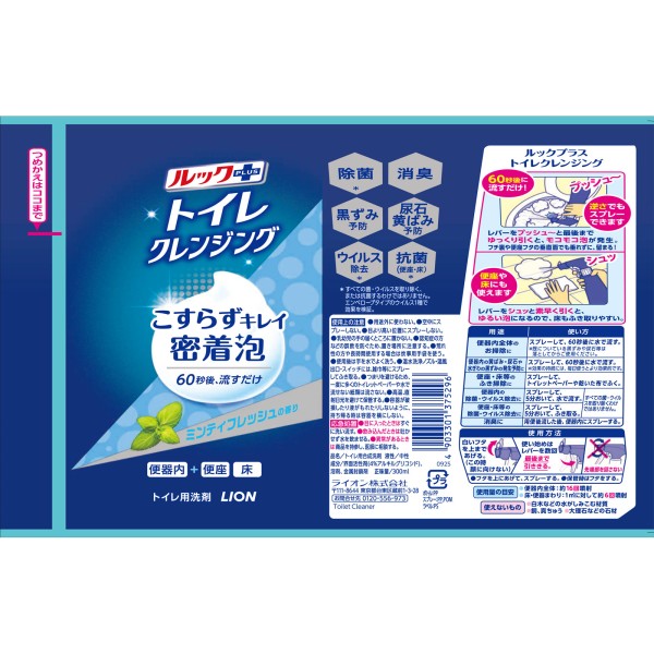 룩 플러스 화장실 클렌징 화장실 청소 폼 문지르지 않는 세제 본체 민티 프레쉬향 화장실 세제 300ml 라이온 > 안심(중성) 타입