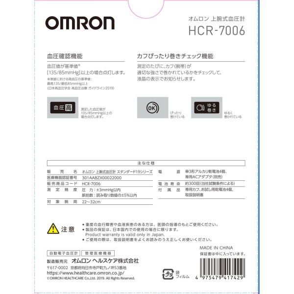 상박식 혈압계 HCR-7006 오므론 헬스케어 > 상완식