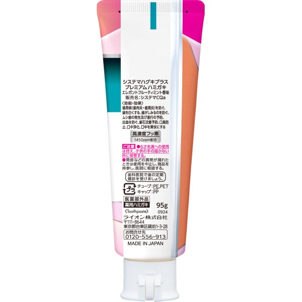 시스테마 잇몸 플러스 프리미엄 치약 프루티 민트 95g 라이온 > 치주병