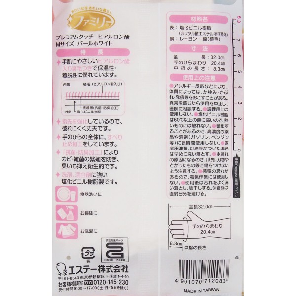 패밀리 프리미엄 터치 히알루론산 M 펄 화이트 1켤레 에스테 > 비닐