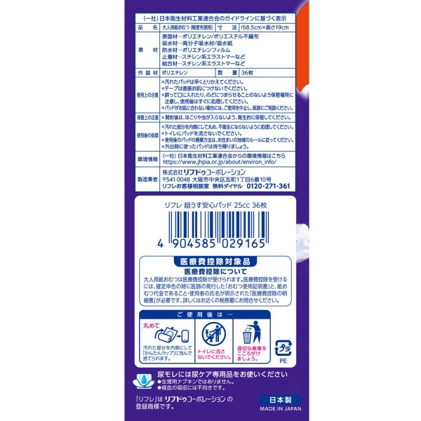 리프레 안심 패드 25cc 36매 리브도 코퍼레이션 > 패드 (미량)