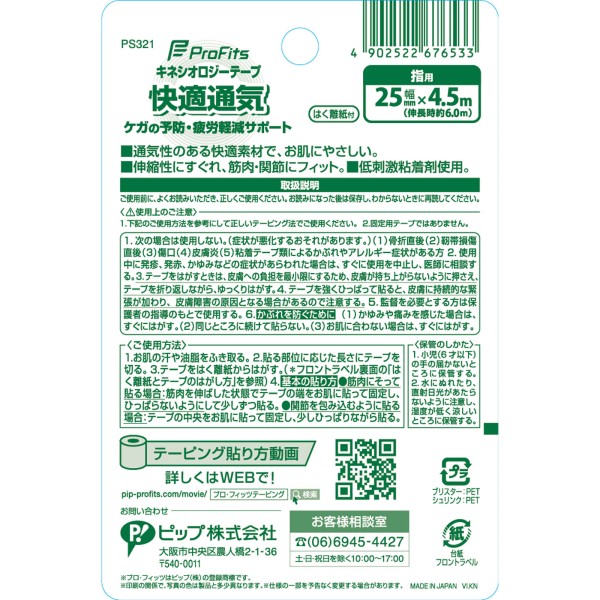 프로 피츠 키네시올로지 테이프 쾌적 통기 25mm 1P 핍후지모토 > 테이핑 테이프 고정